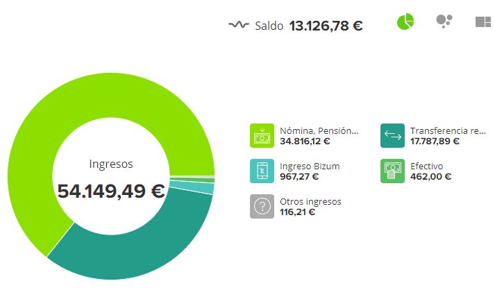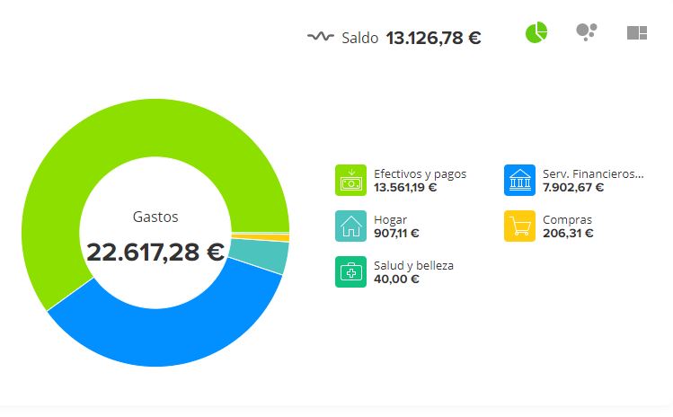 Con ella podrás ver un resumen desglosado y categorizado de tus ingresos y gastos, de una forma rápida y visual. Esto te ayudará a localizar posibles gastos innecesarios y a ver la evolución de tus ahorros.