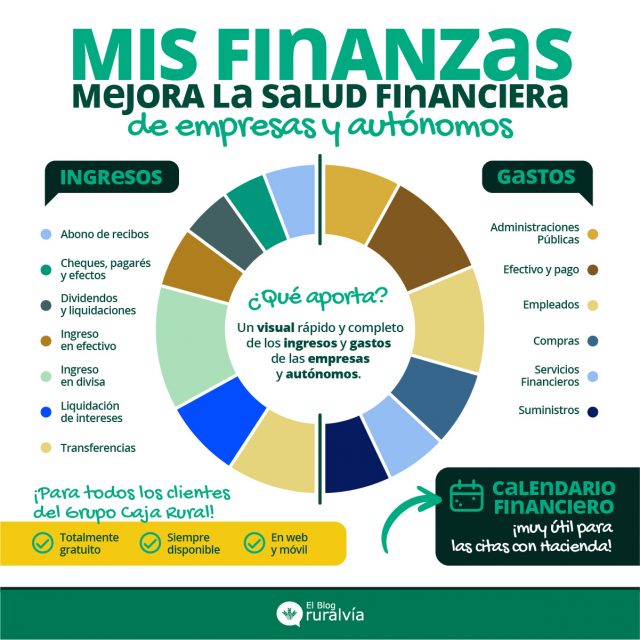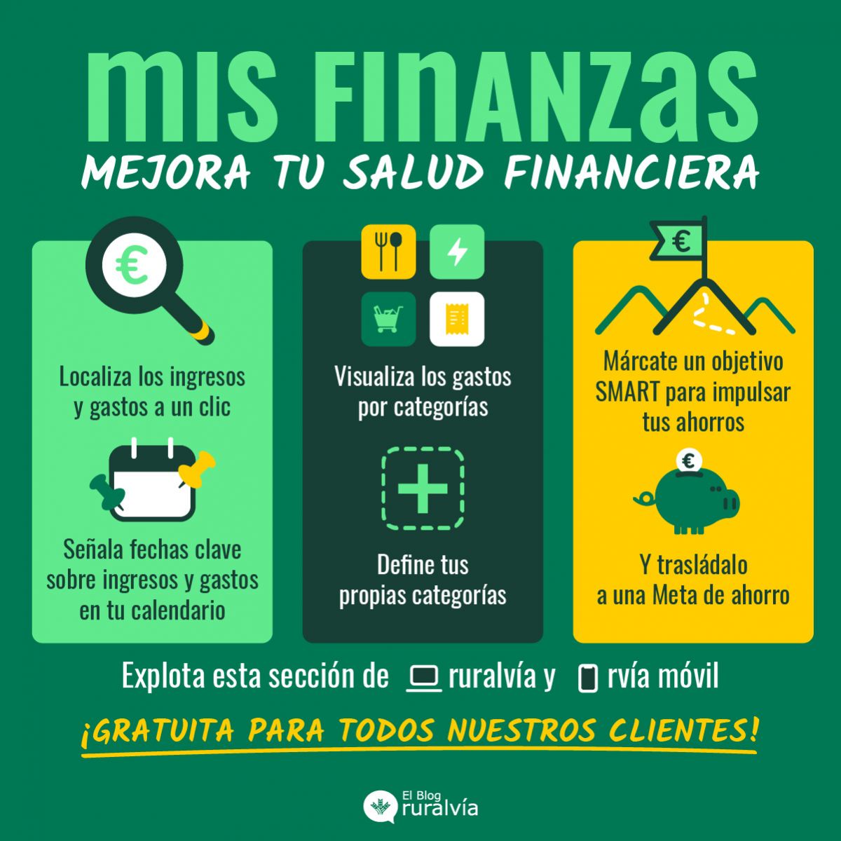 MIS FINANZAS es una funcionalidad integrada en Ruralvía, tanto en la versión móvil como en la versión web, que ofrece una visión gráfica de nuestros ingresos y gastos.
