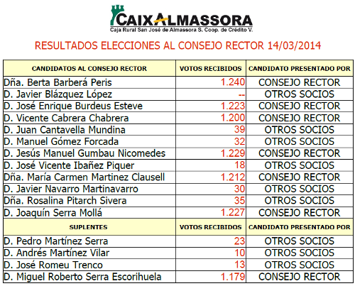 En cumplimiento del acuerdo adoptado por el Consejo Rector de esta Entidad y de conformidad con lo legal y estatutariamente establecido, se convoca a todos los socios de Caja Rural San José de Almassora, S. Coop. De Cdto. V.
